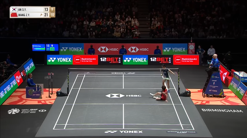 - 1세트 패배 – 왕즈이 선수의 강력한 공격에 밀려 13-21로 패배