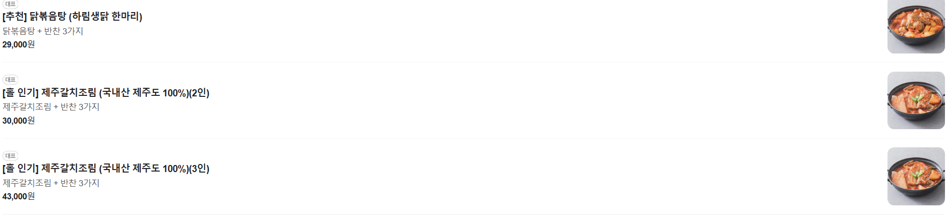 - 2인분 (생방송투데이 갈치조림 + 반찬 3가지) – 30,000원