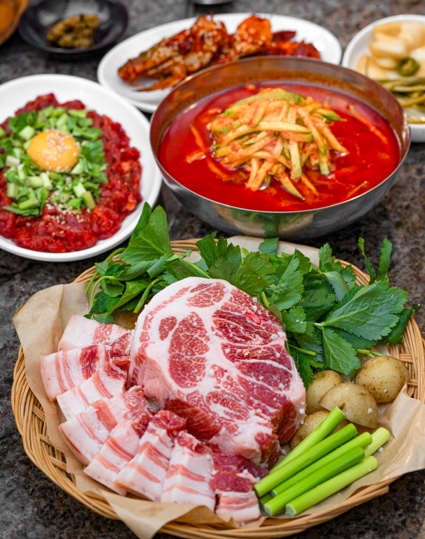 특히 고추장 육회와 함께 목살을 싸 먹으면 입안이 완전 파티!