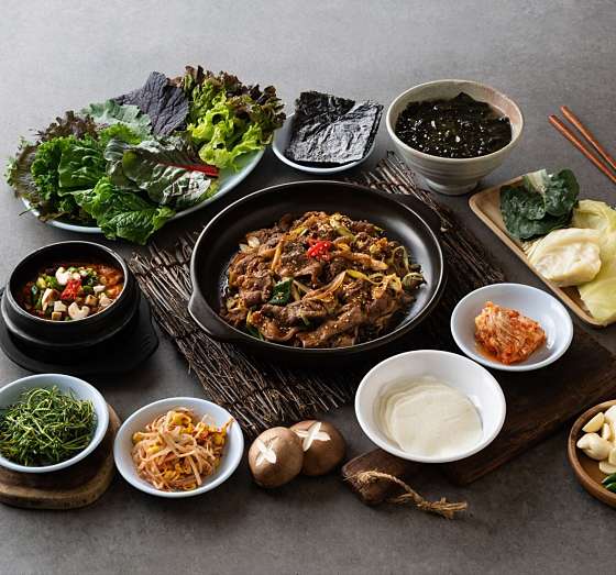 쌈채소 라인업에는 깻잎, 케일, 청겨자, 적근대, 찐 양배추, 호박잎 등 평소 쉽게 접하기 어려운 쌈들도 있어, 식사 내내 지루할 틈이 없습니다.