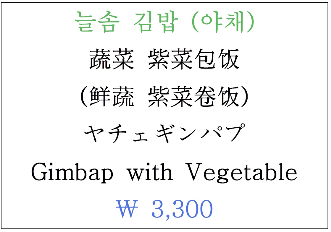 - 늘솜김밥: 유부와 각종 야채가 가득 들어간 클래식한 기본 김밥