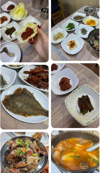 신선한 재료 + 정성스러운 양념 + 푸짐한 밥상 구성이었어요.