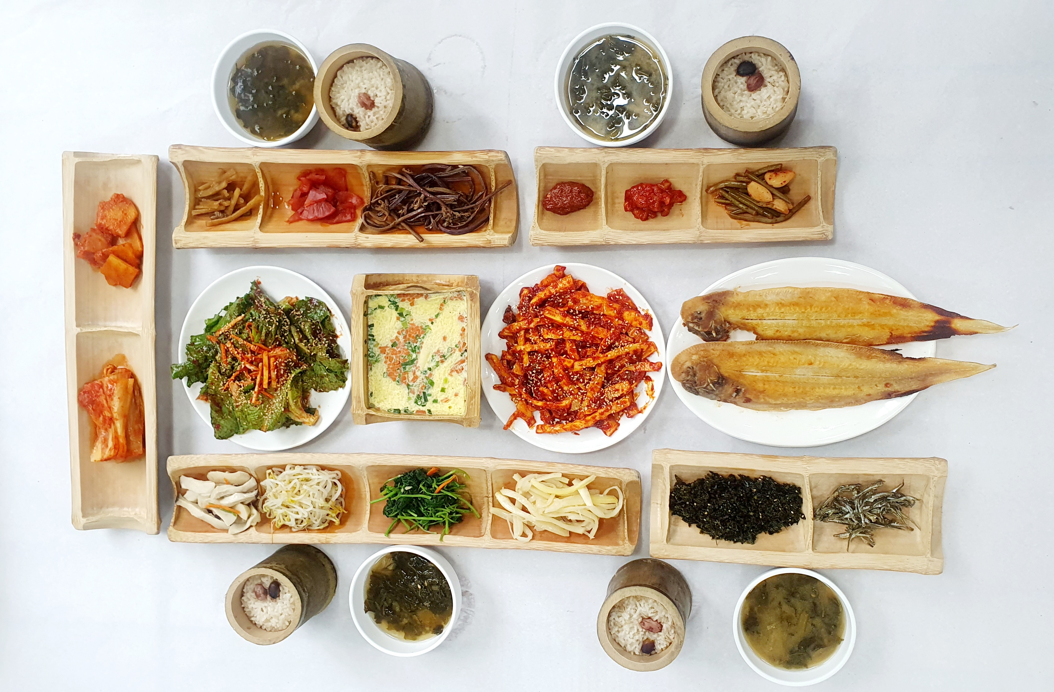 - 대통밥정식은 반찬 14가지와 함께 푸짐하고 만족스러운 구성